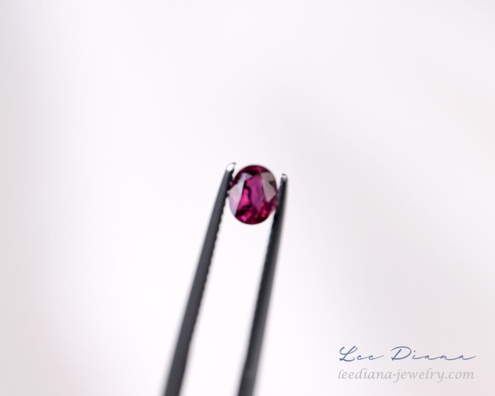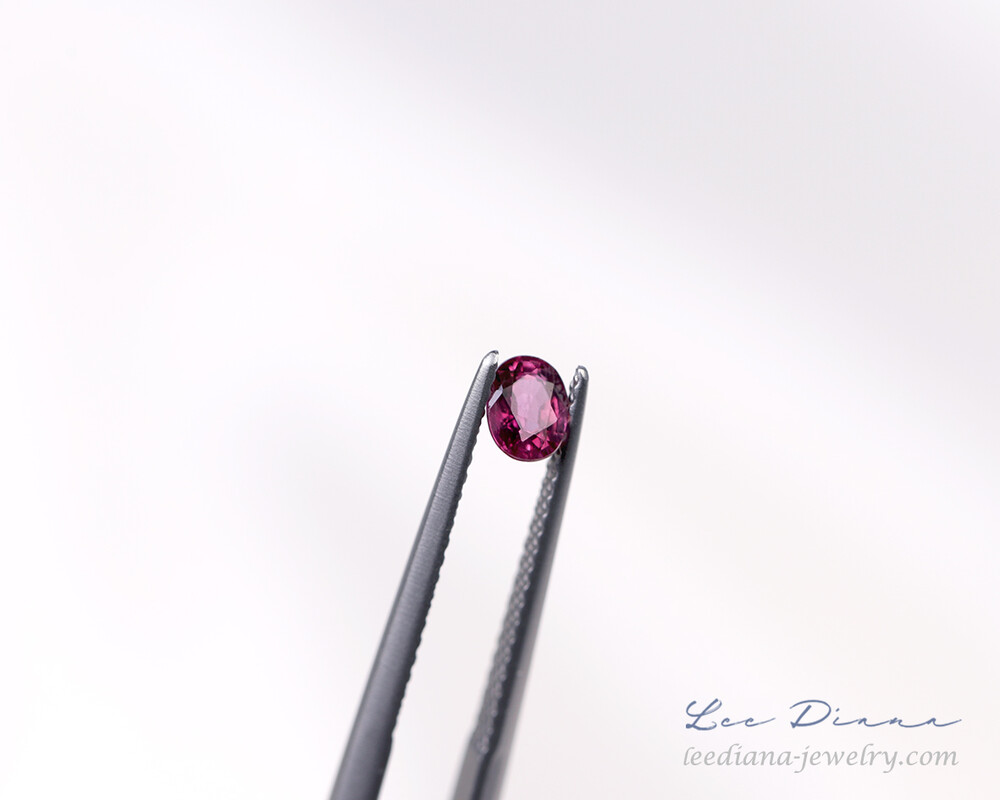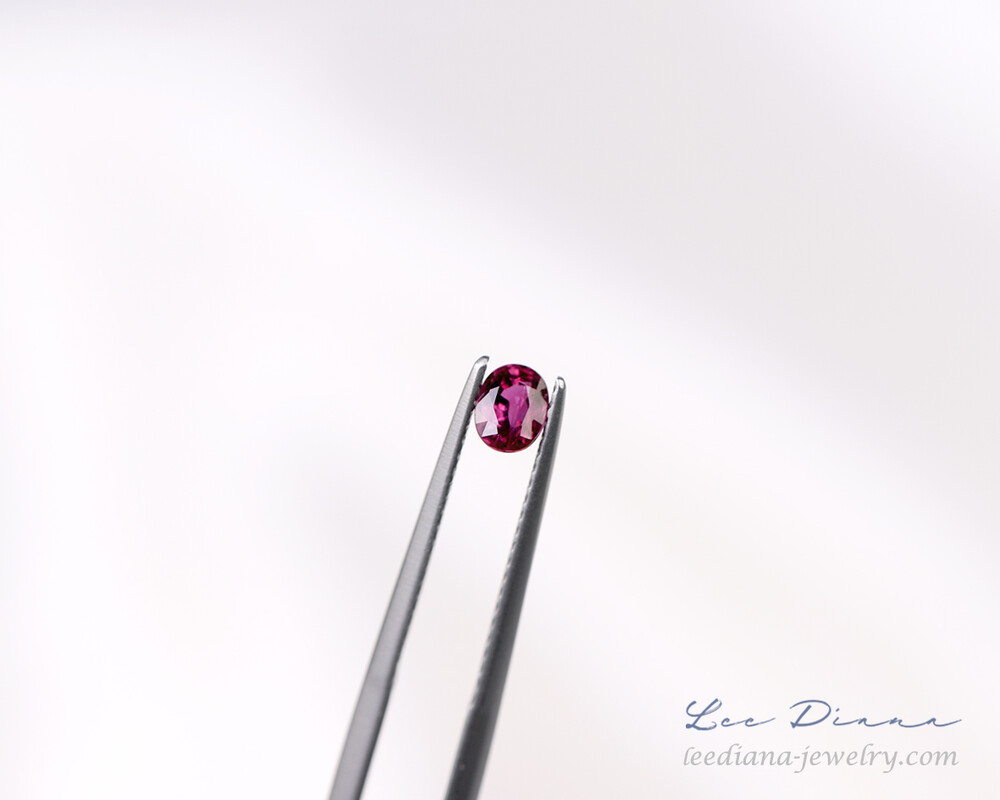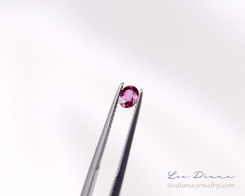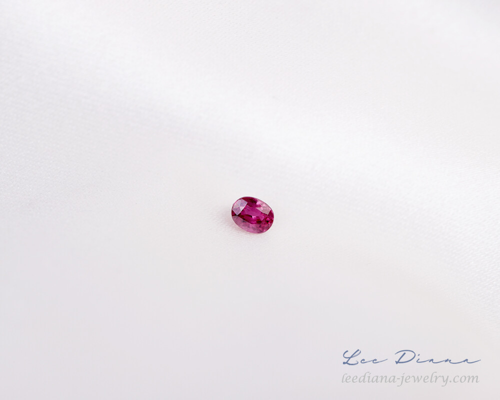 레디쉬한 자홍빛의 작지만 맑은 루비입니다.