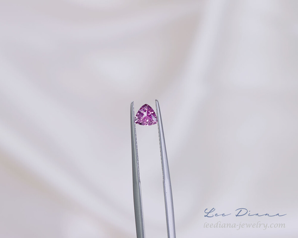 귀여운 크기의 핑크 사파이어 트릴리언컷입니다.