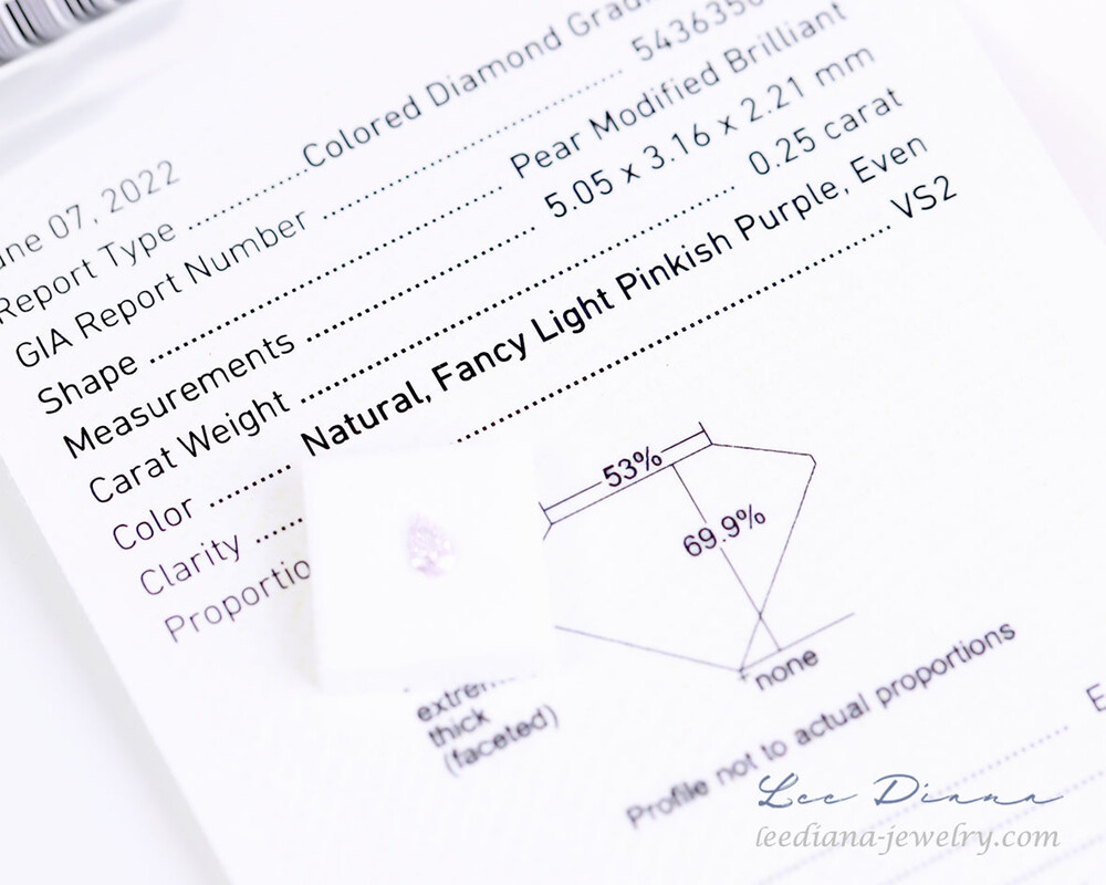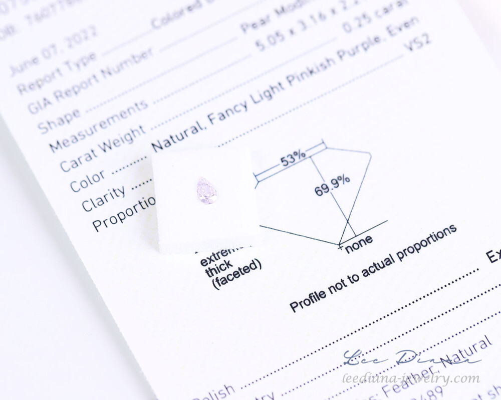 라이트한 퍼플리쉬 핑크 컬러의 천연 다이아몬드입니다.
